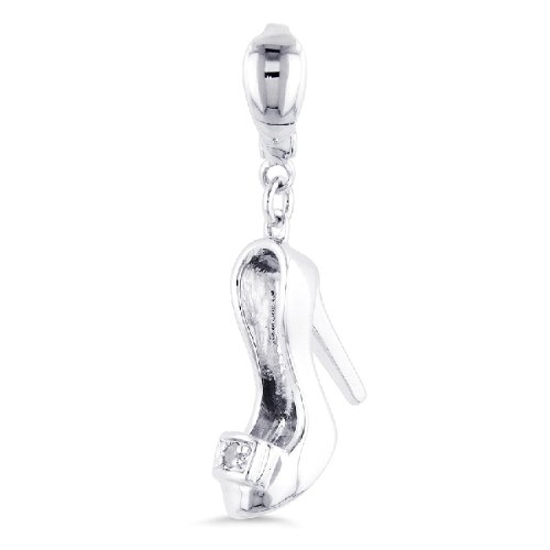 High-heel charm makes a fun and flirty addition to your jewelry. Jewelry is crafted of fine sterling silver. Charm features a clip-on bale that can easily be applied to any bracelet or chain.
