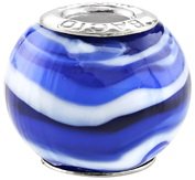 Pandora Compatible Bacio Murano Large Glass Artisan Italian Blue Stripe Sterling Silver Bead Reviews