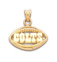 14kt gold Indianapolis Colts team football pendant 7/8 inches wide by 7/8 inches high from top of bail to the bottom. Style #6330